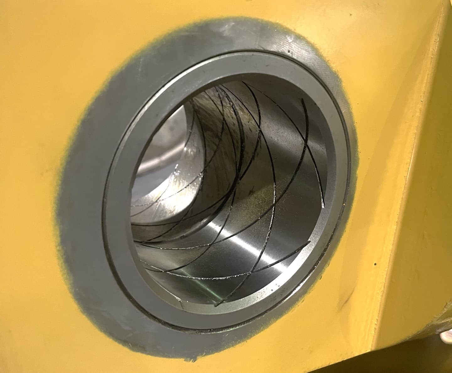 従来も本体側破砕面には耐摩耗材を使用していましたが、最も減る範囲にはさらにウェアプレートを追加しました。修理時には簡単にプレート交換できるので、メンテナンスが楽になります。 |