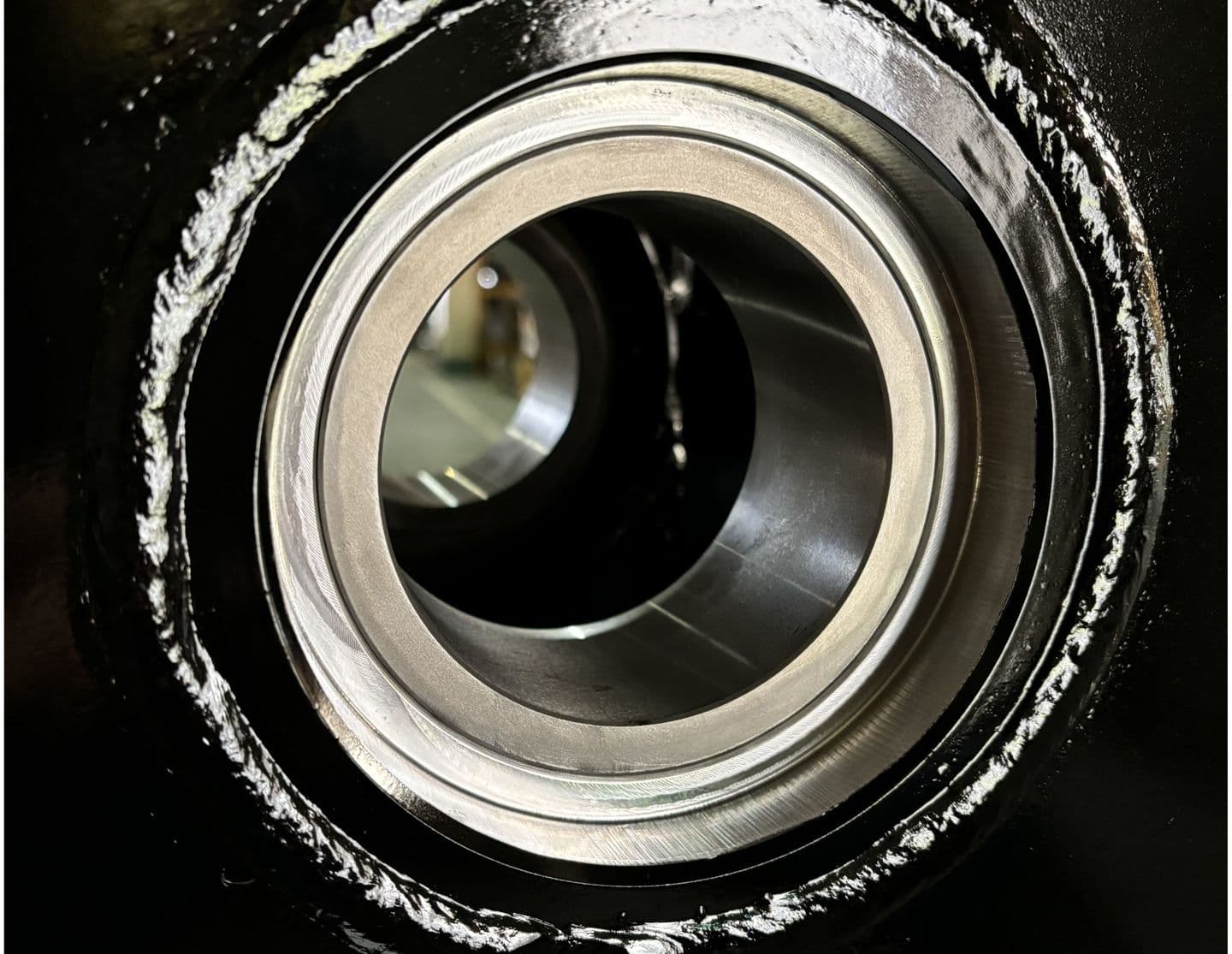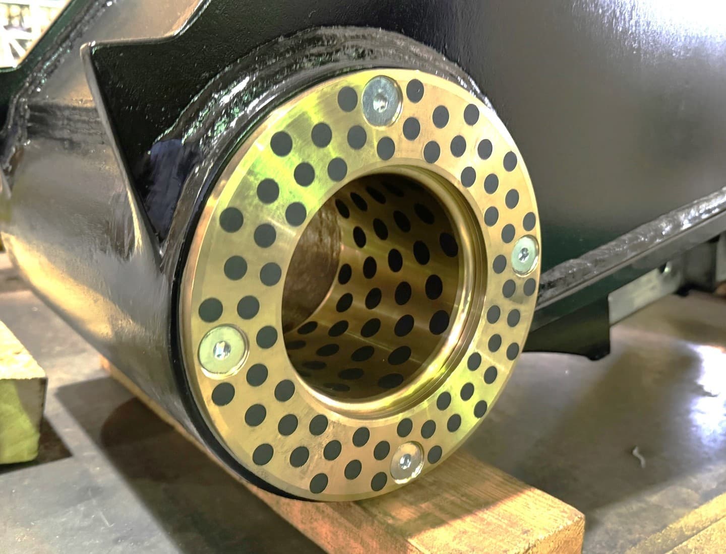 シリンダブッシュも修理頻度の多い部品です。LS1500では破砕力が増えた分、ブッシュの材質を特殊鋼に改良し、更に肉厚も増やしました。他社にはない細かな油溝にも注目です。 |