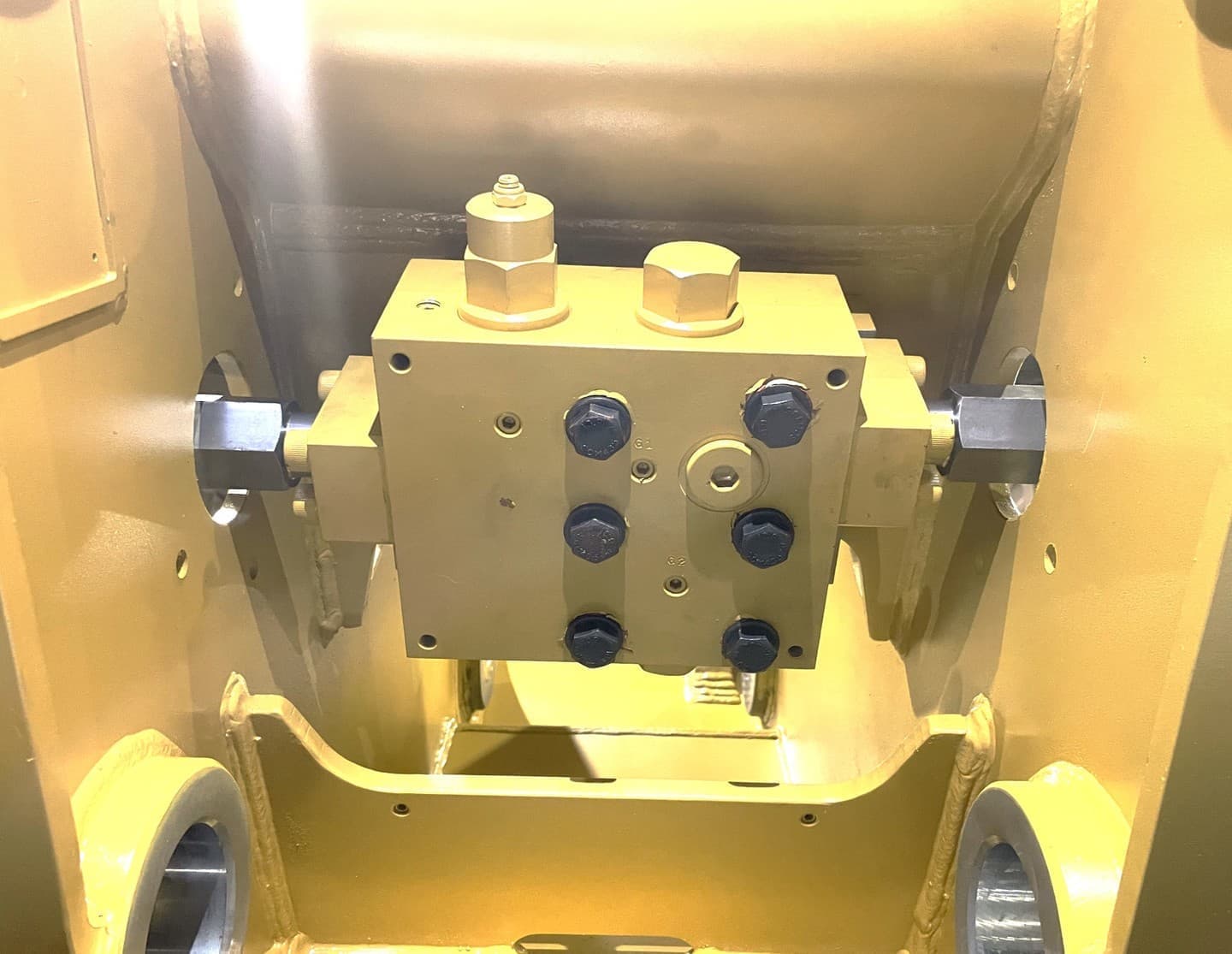 現場でのホース交換をよりスムースにするために点検口を広げました。両腕が入るので組付けしやすく、パイプで延長したスパナも楽に締められます。側板自体は厚みを増やして強度を維持しました。 |