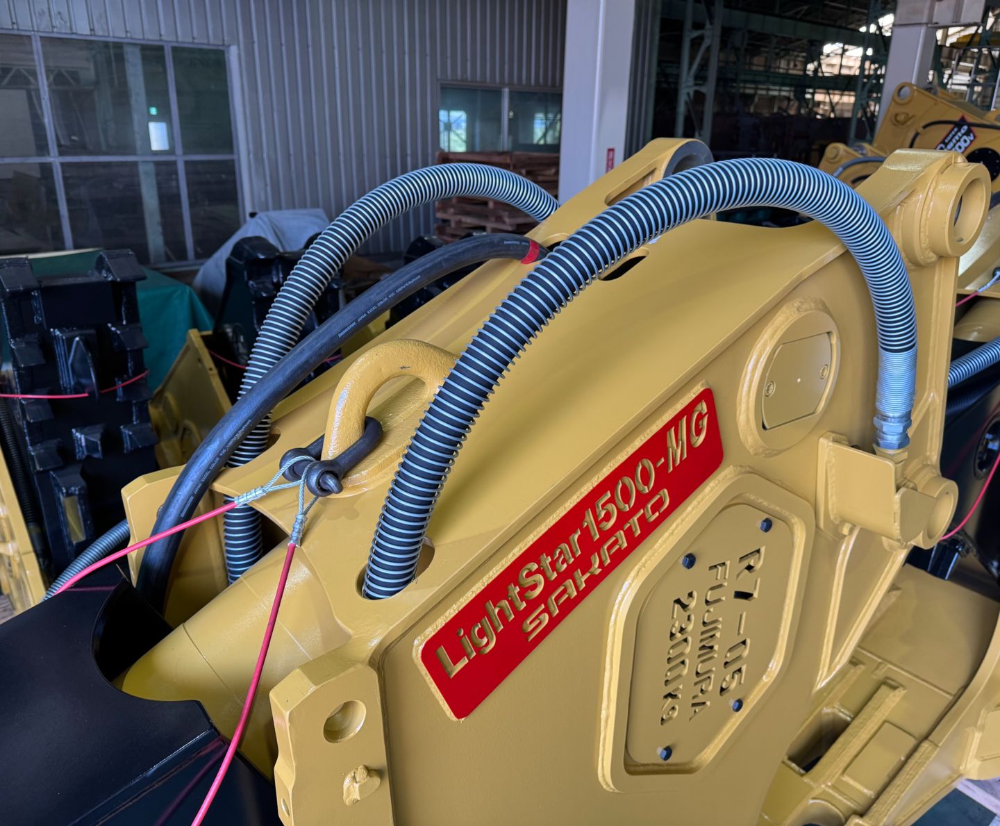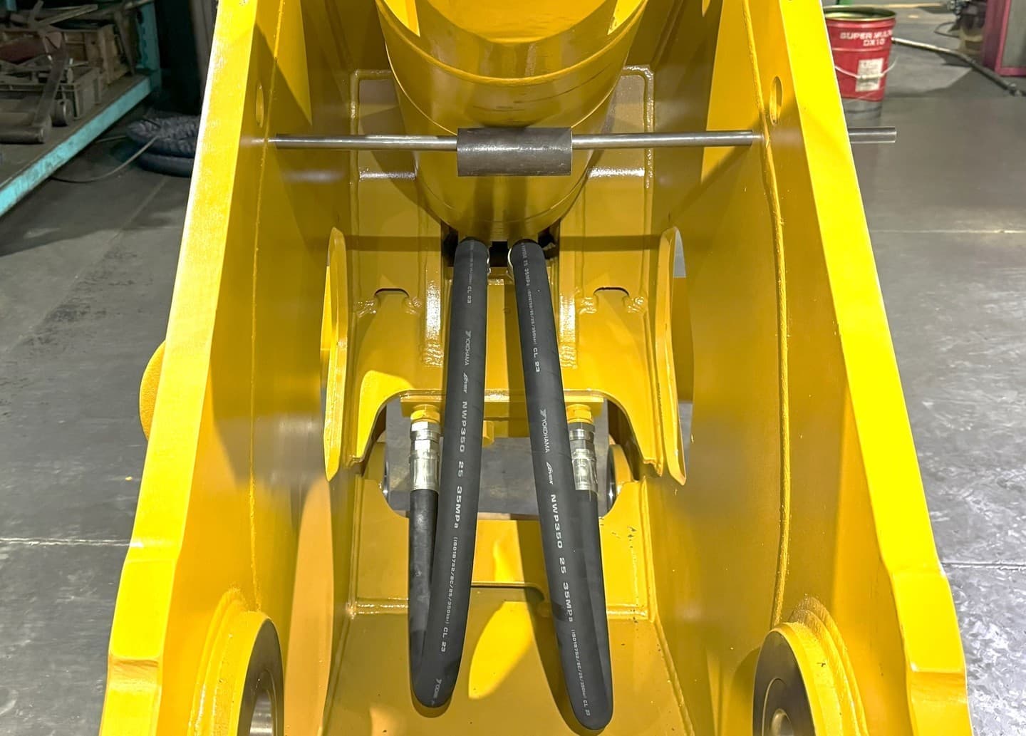 機内ホースは本体奥にコンパクトに収まり、更にはシリンダの後ろに隠れる配置になっています。作業中に鉄筋が当たってホースが損傷するリスクが大幅に減少します。